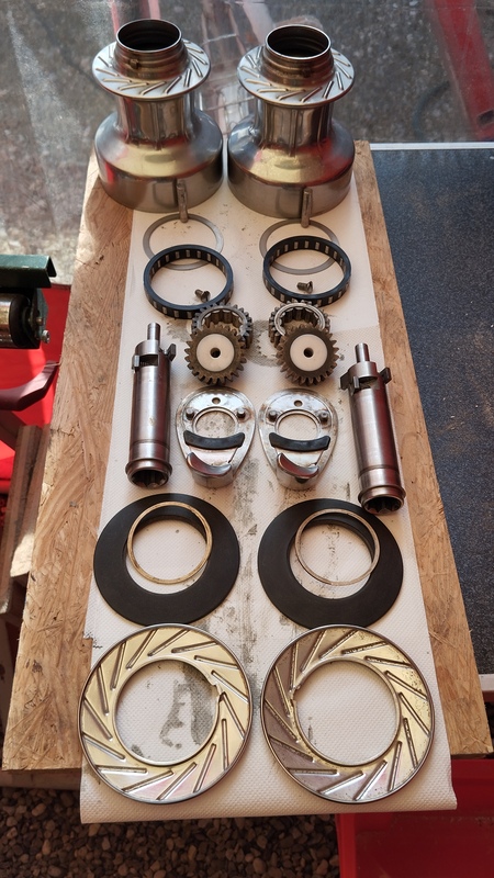 Ich wusste gar nicht, daß eine Winsch aus so vielen Einzelteilen besteht. Die große Winsch von Anderson, Modell 46 ST, besteht aus mehr als 50 Einzelteilen. Da gibt es richtig viel zu entfetten und reinigen.