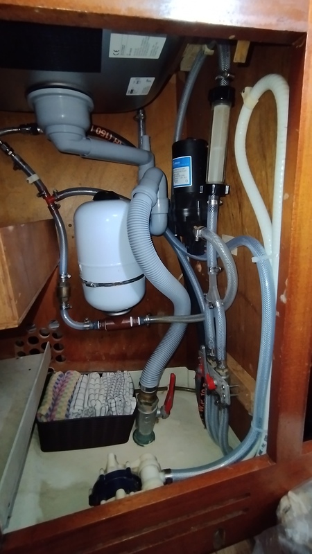 Auch alle Schläuche unter der Spüle wurden ausgetauscht und die Absperrventile der Wassertanks in den Bereich unter der Spüle verlegt.