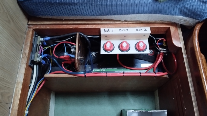 Einbau von 3 Batterieschaltern. Jetzt kann jede Batterie einzeln je nach Ladestatus dazu oder abgeschalten werden.