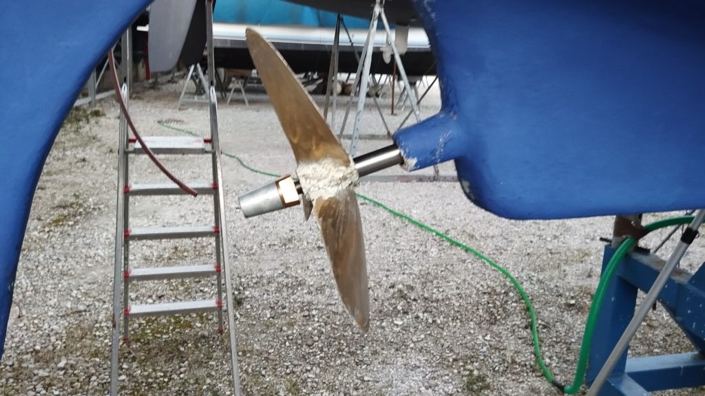 Nach einer wahren Odyssee, die auch perfekt in diese Gegend passte, hatten wir zu guter Letzt einen Propeller, der etwas zu klein und eine Propellermutter, die etwas zu groß war. Im Schnitt passte das Ganze, ABER wir wussten zu diesem Zeitpunkt auch schon, dass diese Lösung nicht die endgültige war. Nachdem wir uns auf Lefkada, genauer in der Nydribucht, auch schon eine neue Antriebswelle anfertigen ließen, lag es nahe, dass wir diese auch verbauten. Endgültig überzeugt waren wir dann als wir erfuhren, dass eine Mutter für unseren Propeller in der Anfertigung ca. 400 € kosten würde.