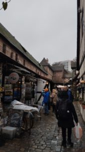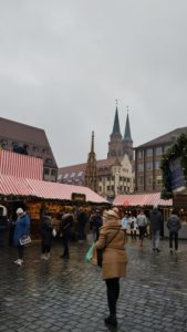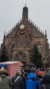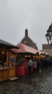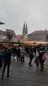 Zuerst fuhren wir mit dem Auto vom Campingplatz „Zur Mühle“ in Zirndorf zum Bahnhof in Anwanden, von dort dann ging es dann weiter mit der S-Bahn zum Nürnberger Hauptbahnhof. Den Rest der Strecke ging es dann zu Fuß weiter. Vom Bahnhof durch den Handwerkshof, vorbei an der Lorenzkirche über die Fleischerbrücke und schon waren wir da, auf dem Nürnberger Christkindlesmarkt.