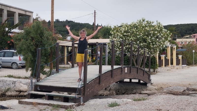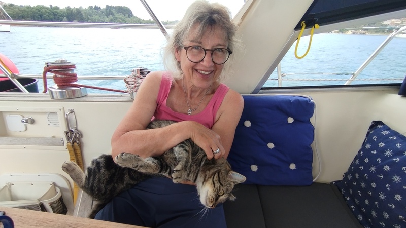 Bevor wir aber Wasser tankten, gingen wir erst einmal in den Ort, um ein paar Kleinigkeiten einzukaufen. Danach füllten wir dann die ersten 100 Liter in unseren Wassersack und brachten alles an Bord. Nach zwei weiteren Fahrten waren unsere Wassertanks wieder voll. Natürlich gingen wir dann anschließend in die Taverne, um unseren Durst mit elektrolytischen Getränken, sprich Bier, zu stillen und auch eine Kleinigkeit zu essen. Den Rest des Tages verbrachten wir gemütlich mit unserer Fellnase.