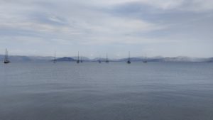 Nach einer kurzen Verabschiedung von unseren Freunden holten wir den Anker ein, setzten unsere Segel und nahmen Kurs auf Petriti. Bevor wir aber auf Südkurs Richtung Petriti gehen konnten mussten wir erst Richtung Osten am Kreuzschifffahrtsterminal vorbei…….