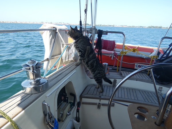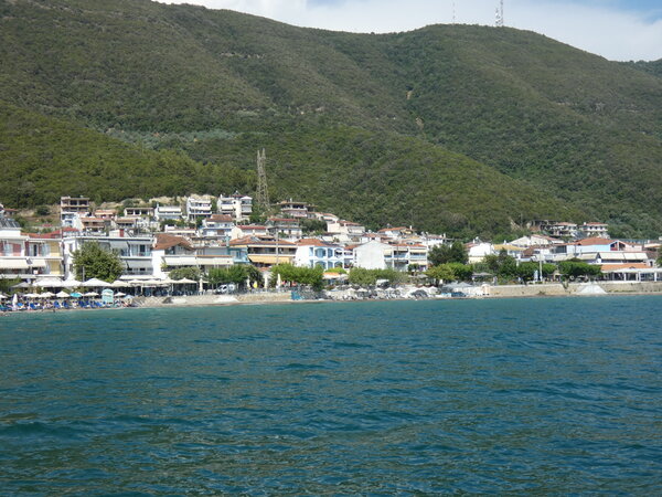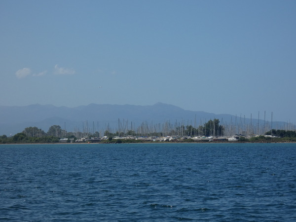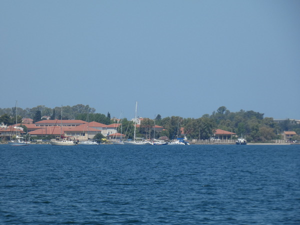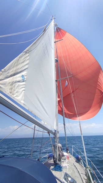 Unser erstes Ziel war die Stadt Menidi am östlichen Ende des Golfes. Gegen Mittag, mit dem langsam auffrischenden Wind, segelten wir zuerst Richtung Südost los. Nach ein paar Seemeilen änderten wir den Kurs Richtung Ost und ließen uns die 15 Seemeilen, zuerst mit Blister und Großsegel, später nur mit Großsegel vom Westwind nach Menidi tragen.