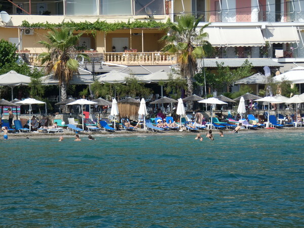 Wir warteten eine gute Stunde, bis der Wind sich etwas legte und auch um zu prüfen, ob der Anker gut saß. Den Ankeralarm aktiviert, ließen wir unser Dingi zu Wasser und fuhren an Land, um frisches Brot und Obst zu kaufen. Im kleinen Fischerhafen angekommen, trafen wir einen netten, in die Jahre gekommenen, alleinstehenden und redseligen Segler aus Bayern, der sich als Kurt vorstellte und mit seinem Katamaran Marina unterwegs war. Nachdem wir unsere Einkäufe erledigt hatten, trafen wir Kurt auf der Hafenpromenade wieder und hatten das Gefühl, dass er Gesellschaft suchte. Spontan sprachen wir ihn an, ob er nicht Lust hätte, mit uns in einer netten Taverne zu Abend zu essen. Kurt nahm dankend an und erzählte uns seine Lebensgeschichte und vor allem seine Frauengeschichten. Er hatte richtig Spaß und wir wurden bestens unterhalten. Wir verbrachten einen schönen Abend in Menidi und denken, dass es auch ein Wiedersehen mit Menidi geben wird.