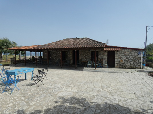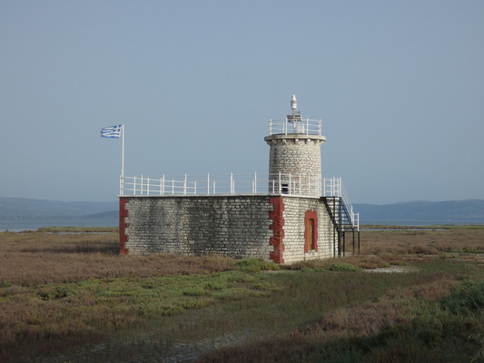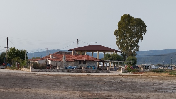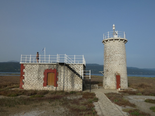 Unser nächstes Ziel war nicht einmal 2 Seemeilen von Menidi entfernt. Kopraina mit seinem neuen Fischerhafen, einem Salz-Museum, einer Taverne und einem Leuchtturm liegt auf einer langgezogenen Landzunge vor Menidi. Wir mussten also nur den Anker heben, zweimal Gas geben und schon waren wir da. Ankern mussten wir schon deutlich vor dem Hafen, da hier aufgrund der Lage alles sehr versandet und somit sehr seicht ist. Und immer wieder grüßte der Wind, pünktlich zur Mittagszeit legte er los. Nur dieses Mal hatten wir als Schutz die Landzunge von Kopraina vor uns. Zudem hatten wir auch einen hervorragenden Grund, in dem sich unser Anker tief eingraben konnte. Wir waren uns sicher, trotz des Windes am Nachmittag von Bord gehen zu können und fuhren mit unseren Dingi an Land, um uns ein wenig umzuschauen und die Lage zu erkunden. Beim Losfahren entdeckten wir, dass wir unseren Ankernachbarn, besser dessen Boot, schon aus vergangenen Ankerbuchten her kannten. Manche Boote erkennt man immer schnell, vor allem wenn sie auch noch unter deutscher Flagge fahren und so außergewöhnliche Namen wie “Hoppetosse” haben.