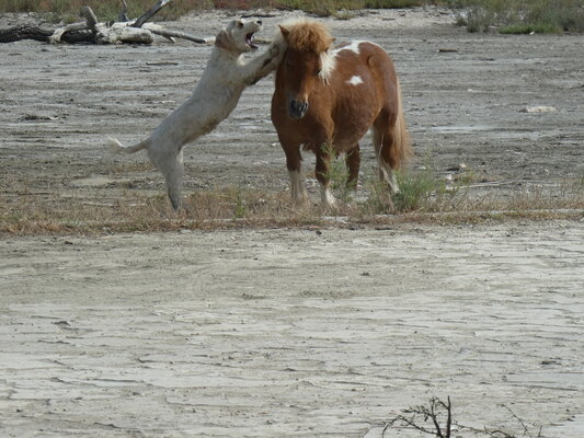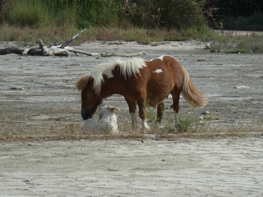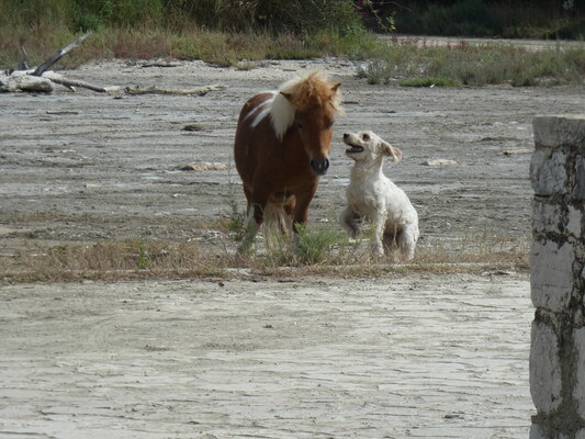 Als wir los spazierten um die Gegend etwas zu erkunden, konnten wir uns auch noch über eine doch etwas ungewöhnliche Tierfreundschaft amüsieren. Ein Hund, der fast so groß war wie sein Spielkamerad, das Pony oder ein Pony, das fast so klein war wie sein Spielkamerad, der Hund, jagten sich mit einer gemütlichen Ausdauer über den Hof und mussten dabei darauf achten, nicht über eine Schildkröte zu stolpern.